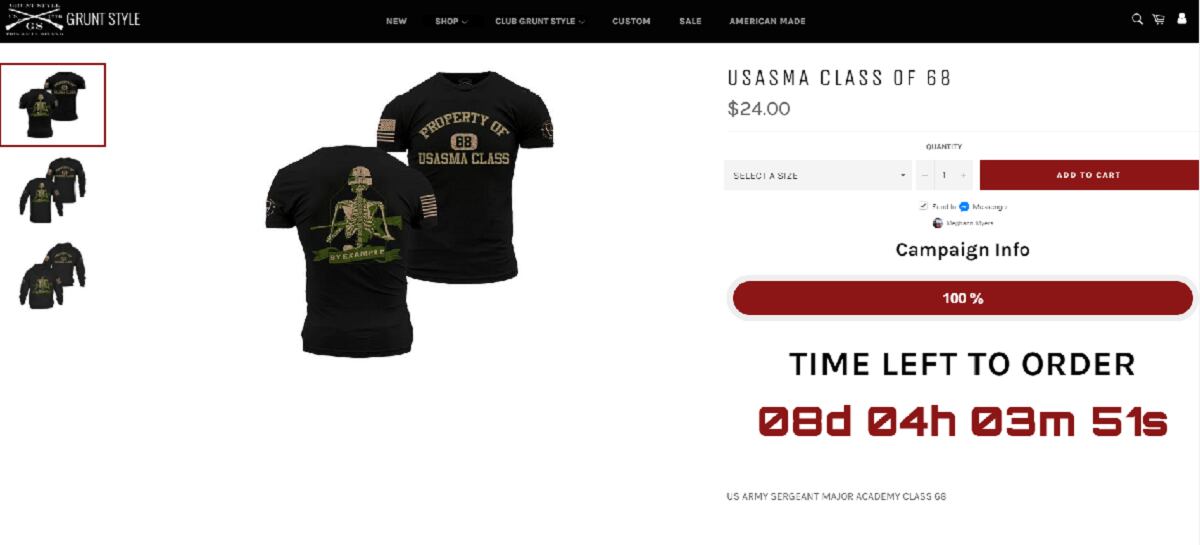 To celebrate their cohort, the military-themed clothing company Grunt Style worked with the academy to design a shirt for class 68 — but according to the report, the school received more than 700 of the shirts for free, despite the shirts retailing online for $24 apiece.